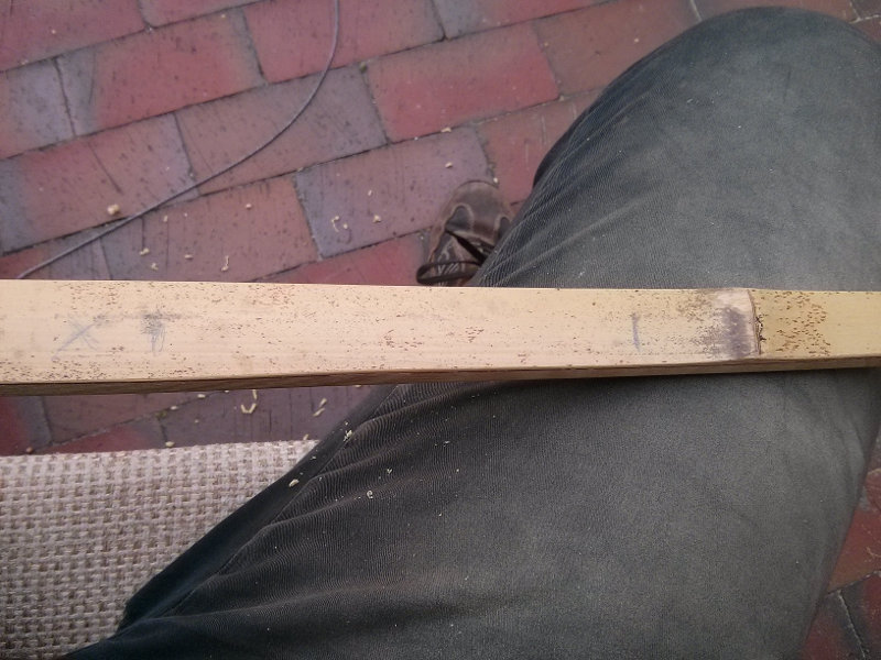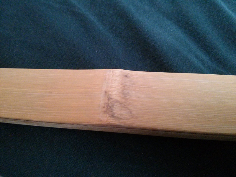 Ich lasse mal Bilder sprechen: jetzt zum Bambus: Ich habe den Bogen jetzt auch schon ein wenig geschossen. Er fühlt sich ziemlich stramm an. Ich befürchte das sich das Zuggewicht wieder ein wenig erhöht hat. Bisher hat er jedoch keine Stauchfalten am Bauch bekommen. Ich bin gespannt ob das so bleibt. Wenn ich nächstes WE wieder auf dem Festland bin, werde ich den Bogen nochmal am Tillerstock wiegen. Vielleicht muss ich dann nochmal ein wenig schmirgeln.