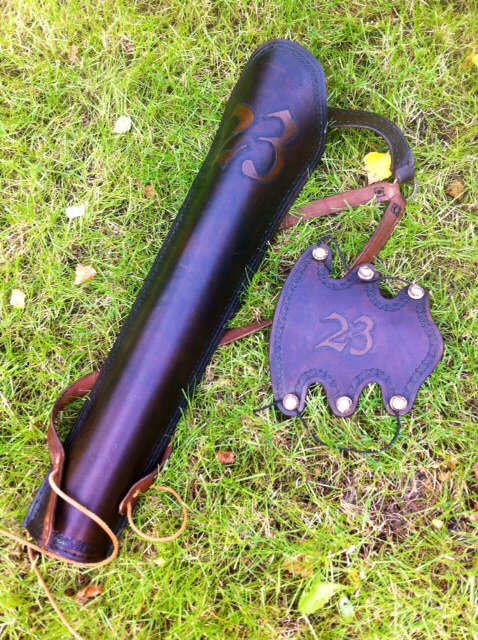 so, will auch hier mein neuestes Werk mal zeigen: Rückenköcher mit 3-Punkt-Gurtung und individuellem Motiv, dazu passend der Armschutz.