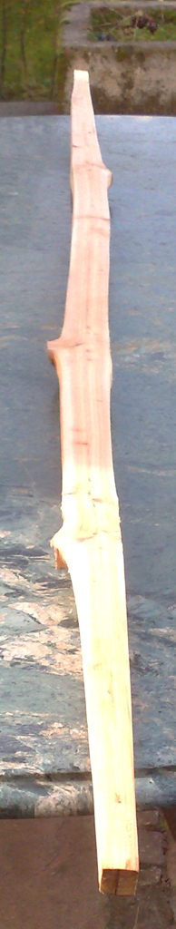 Wenn dann so ein Stück Holz wie das Deine unter den geübten Händen eines Bogenbauers einen interessanten Bogen mit Charakter ergeben könnte, rät man eben erstmal zum Wegstellen.