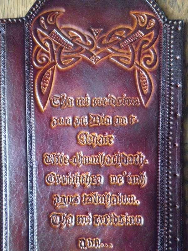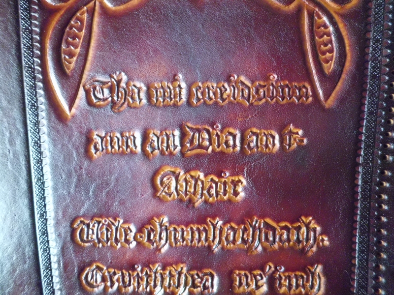 die Schrift ist der Epilog und Prolog des apostolischen Glaubensbekenntnisses in Schottisch-Gälisch