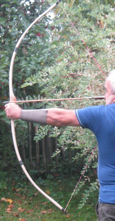 … und hat die Schweiz wohlbehalten erreicht! Sieht toll aus und schiesst auch so! Mein erster Bogen mit Hornnocken. Der Griff ist mit dem dunkleren Hickory-Kernholz zweifarbig. Detailfotos folgen später. Heute Morgen war das Wetter total schön, die Wiese frisch gemäht (danke!), ideal zum Schiessen.