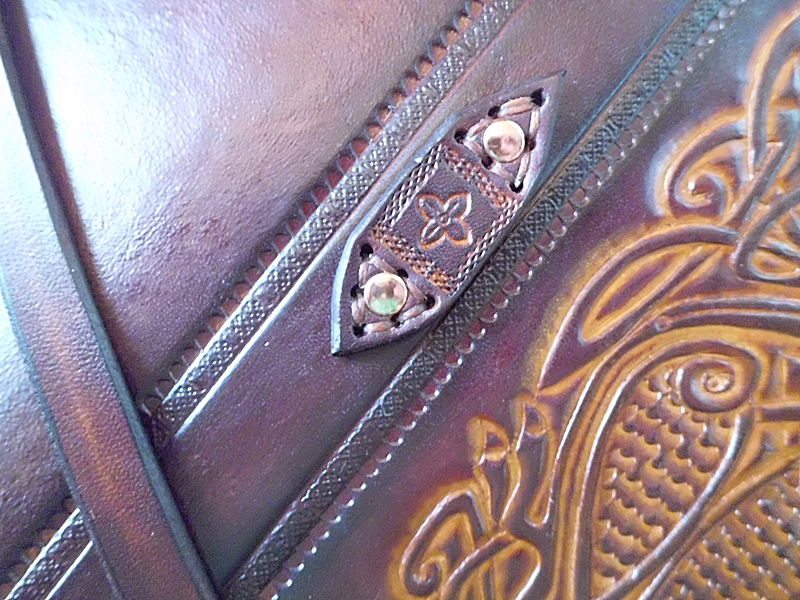- Schulterriemen angefertigt, punziert und gefärbt