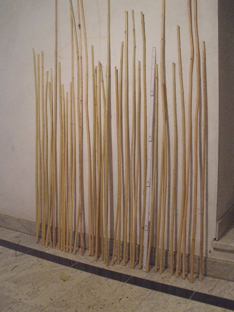 Die Schäfte sind jetzt 3 Tage ohne Rinde getrocknet und haben im Mittel ca.35% ihres Ursprungsgewichtes verloren.