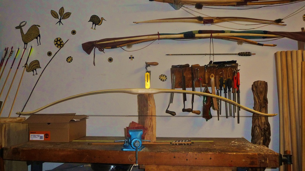 Der Bogen ist bereits fertig (Bilder sobald die Sonne mal wieder rauskommt...).