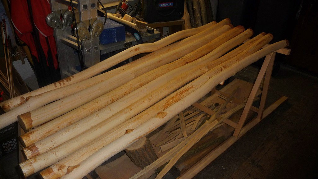 Ich hab vor ca 3 Wochen diesen krummen Holunderstock gefunden. Er ist etwa 155 cm lang und am dünnen Ende ca. 4,5 cm dick. Welchen Bogentyp könnte ich daraus bauen? Ich bin für Empfehlungen dankbar, da ich noch sehr wenig Erfahrungen im Bogenbau habe.
