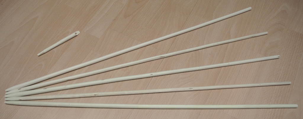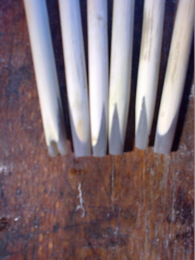 Ich hab heute die Schäfte zusammengesucht, die für mich von der Stärke her in Frage kamen und mit der Japansäge auf 4" Überlänge gekürzt.