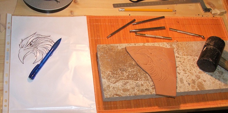 der Riemen austüfteln. Möchte zwar ein ordentliches Resultat erzielen, aber mich auch nicht an zu schwierigen Details überfordern. Also die erste Punzierung nicht zu feingliedrig und nicht zu viel schwieriger Zierrat, Werkzeug ist ja auch noch begrenzt. Werde dann wieder Bilder einstellen und berichten.