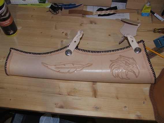 Schön wenn´s gefällt. Habe direkt ein bisschen Gefallen an den Lederarbeiten gefunden, wird wohl neben Bogenbau auch seinen Platz behalten um benötigte Ausrüstung selbst zu fertigen.