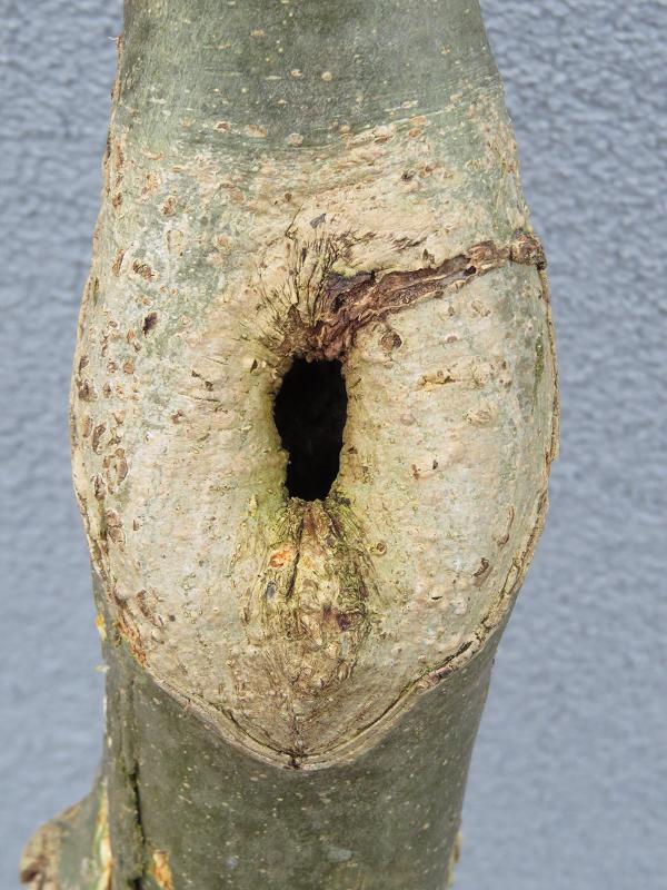 Ich find ein geiles Stück Holz Nettes Detail mit Zweiglein und Knospe Daheim nach der Schälung Unterer WA innen a bissl verfault. schau ma moi