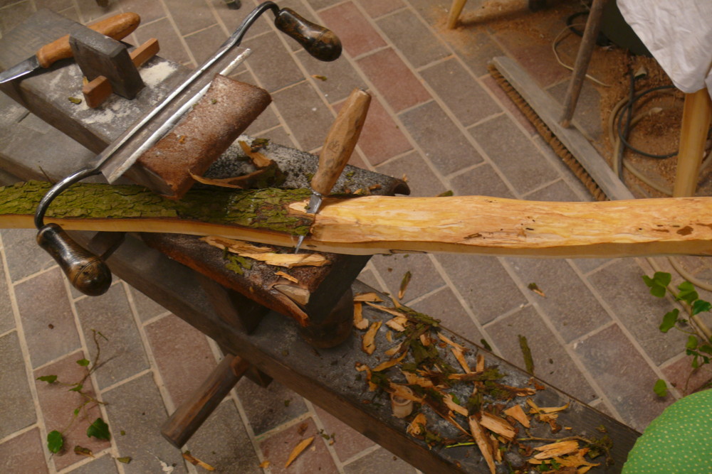 ach ja, Werkzeuge bisher: Zugsäge(zum "fällen"), Bandsäge, Ziehmesser, schnitzmesser.