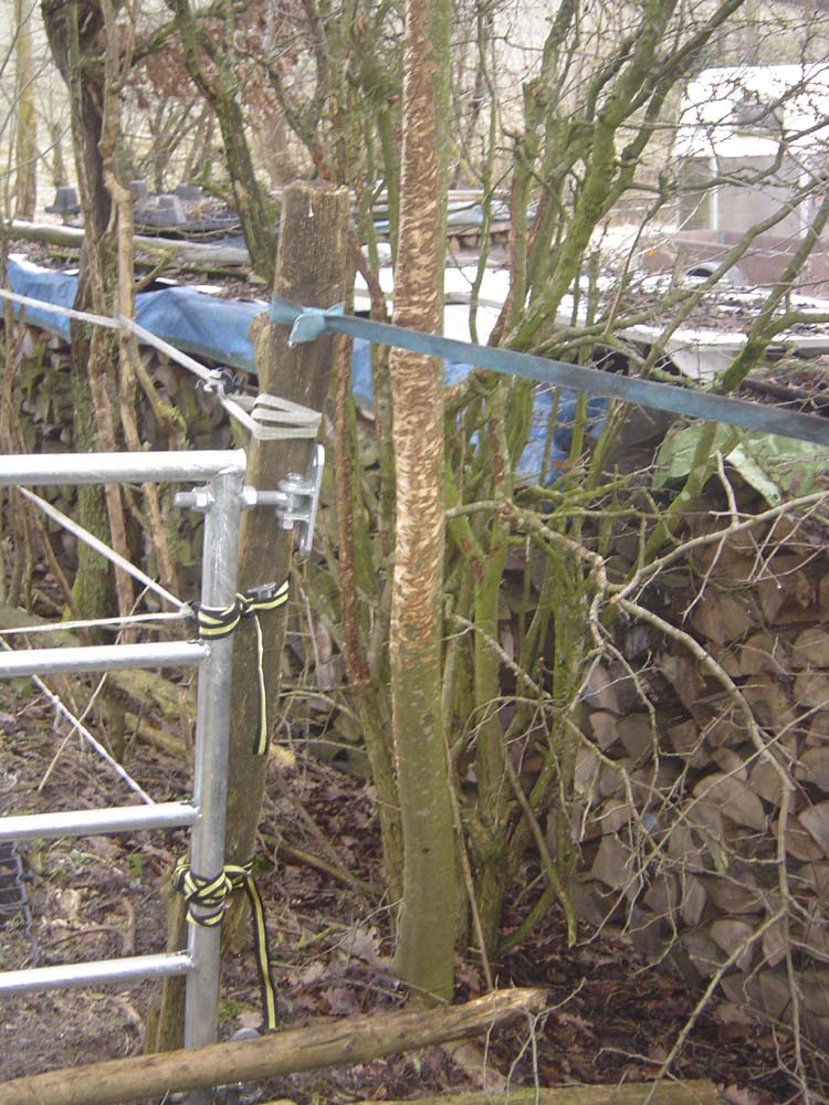 am Zaun zum Nachbargrundstück und schon seit Jahren von den Pferden angeknabbert