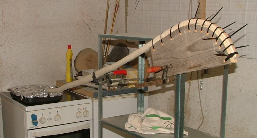so dann mal den Kochtopf aufgesetzt und einen provisorisches Stativ für den Bogen bereitgestellt.