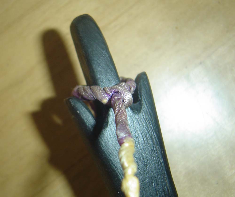 eigentlich wollte ich eine japanische Hanfsehne aus den 1980er Jahren verwenden..... doch der dort verwendete Knoten ist nicht mit der Sehnenaufnahme des 12. Jahrhunderts kompatibel: