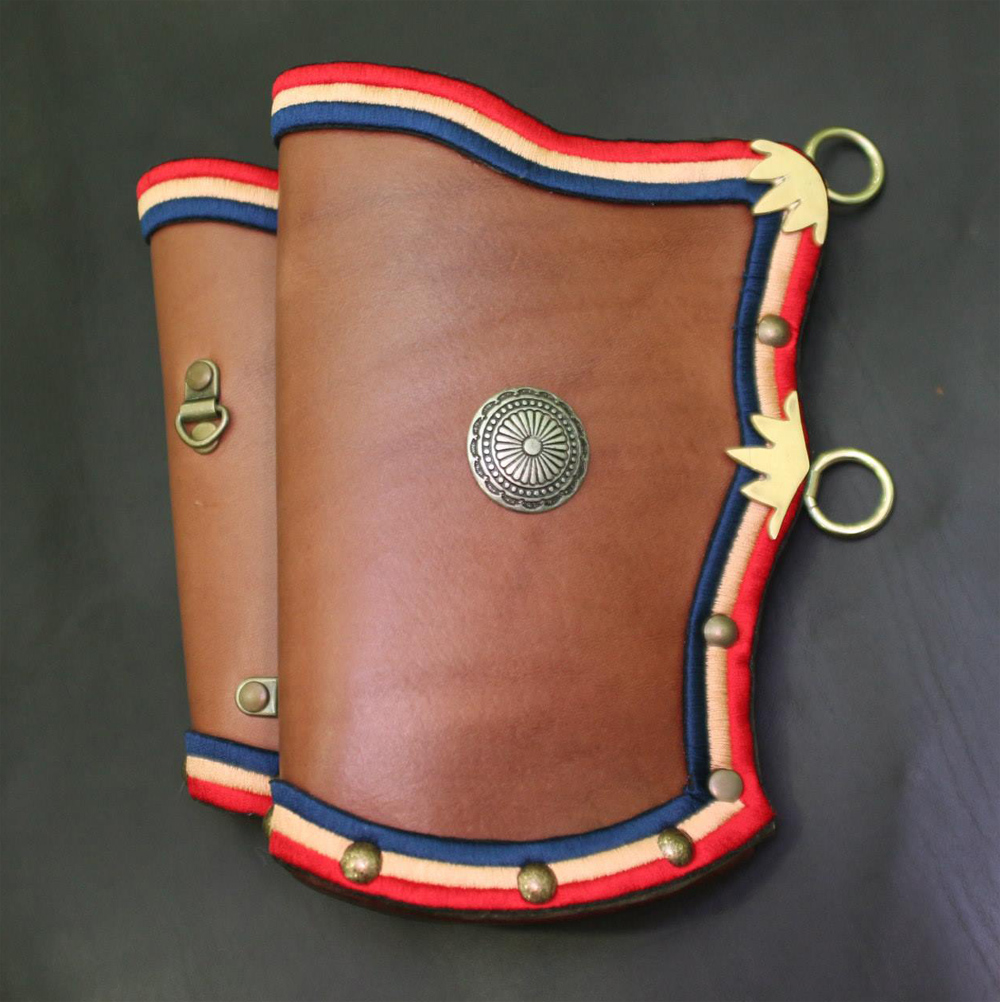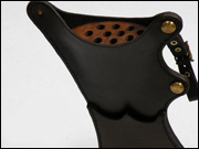 Der Köcher, ein zeitgenössisch schlichte Version der klassischen Reiterköcher, die von den Polen, Russen, Tataren und Türken (und wem sonst noch) getragen wurden (auf der rechten Seite, die Pfeile weissen nach hinten) ist für 10 Pfeile ausgelegt und in schwarz und in braun erhältlich.