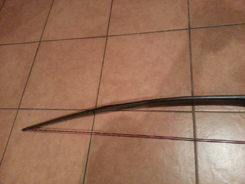 Ich dachte nach dem der Bogen nun matt schwarz geworden ist würde so in etwa Bordo Rot mit gut sichtbarer Holzmaserung passen dazu einen Roten Ledergriff und eine Rot Schwarze Sehne Flämisch gespleisst.