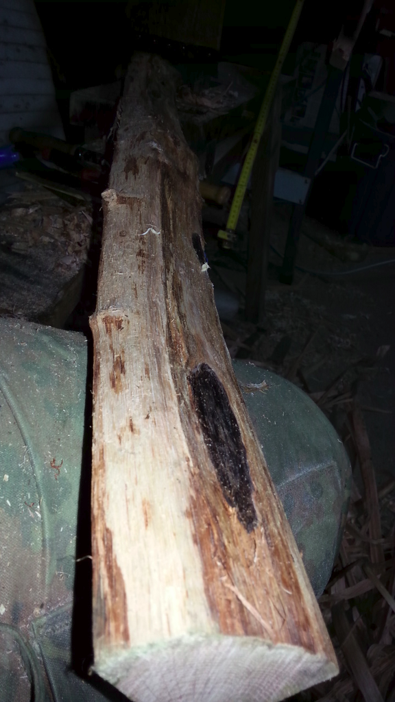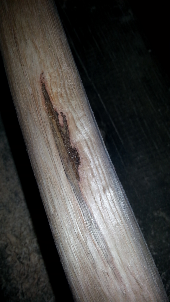 Bei dem haben sich leider im Griffbereich durch das schnelle Trocknen und wahrscheinlich auch in Folge des Spaltens ein paar Spane abgehoben.