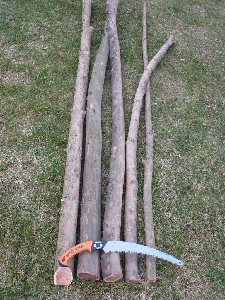 - zwei Robinien-Kanthölzer (etwas schmal, eines davon sieht ganz brauchbar aus)