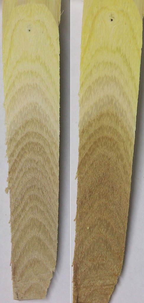 Dicke Ringe, sehr gfut zum Bau von Flachbögen geeignet, für Langbögen mit hohen Profilen nur bedingt, da sehr knitteranfällig.