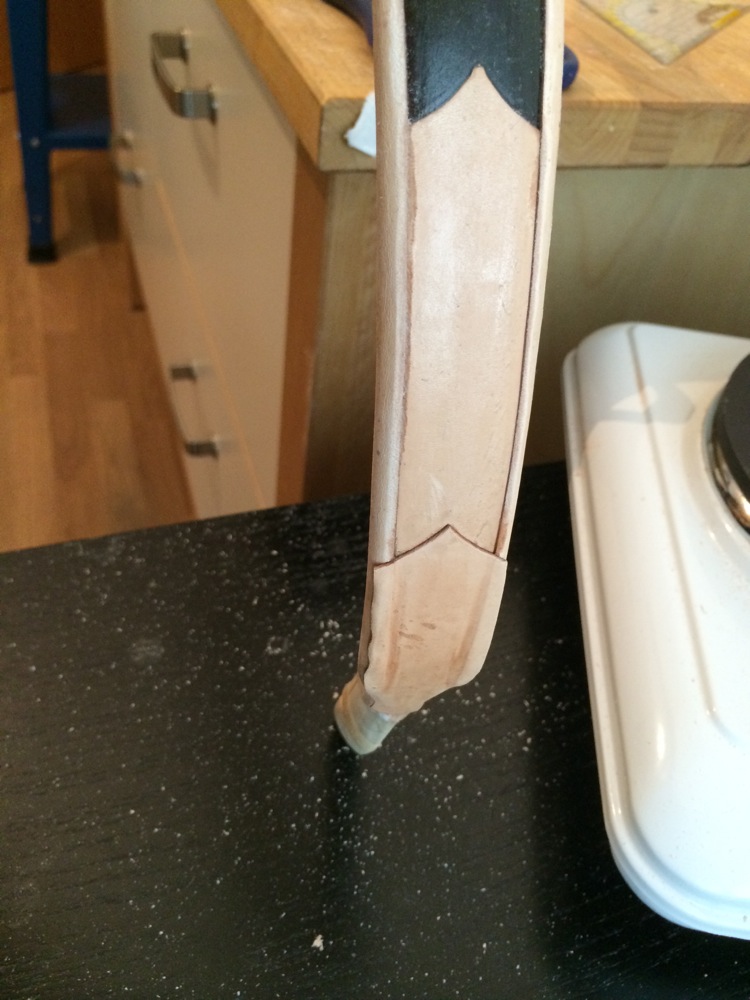 Der Arrowpass hat jetzt 23mm. Es werden mit Leder wohl 25mm werden. Guter Vorsatz für nächsten Bogen: diese Stelle noch enger machen.