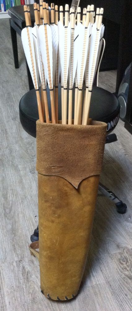 Ich habe ihn anfangs mit Pfeilen von meinem 37#@28" engl.Langbogen (Eibe) getestet und die flogen einwandfrei, habe mir dann ergo Schäfte mit dem Spine bestellt und diesen optisch passenden Pfeilsatz gebastelt.