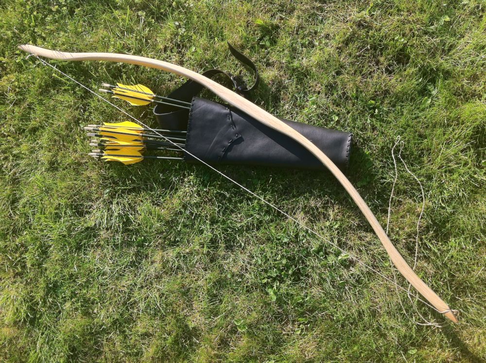 Ich habe ihn anfangs mit Pfeilen von meinem 37#@28" engl.Langbogen (Eibe) getestet und die flogen einwandfrei, habe mir dann ergo Schäfte mit dem Spine bestellt und diesen optisch passenden Pfeilsatz gebastelt.