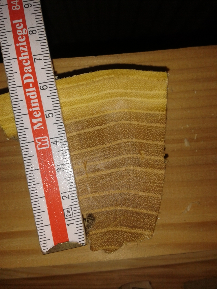Dicke Ringe, sehr gfut zum Bau von Flachbögen geeignet, für Langbögen mit hohen Profilen nur bedingt, da sehr knitteranfällig.