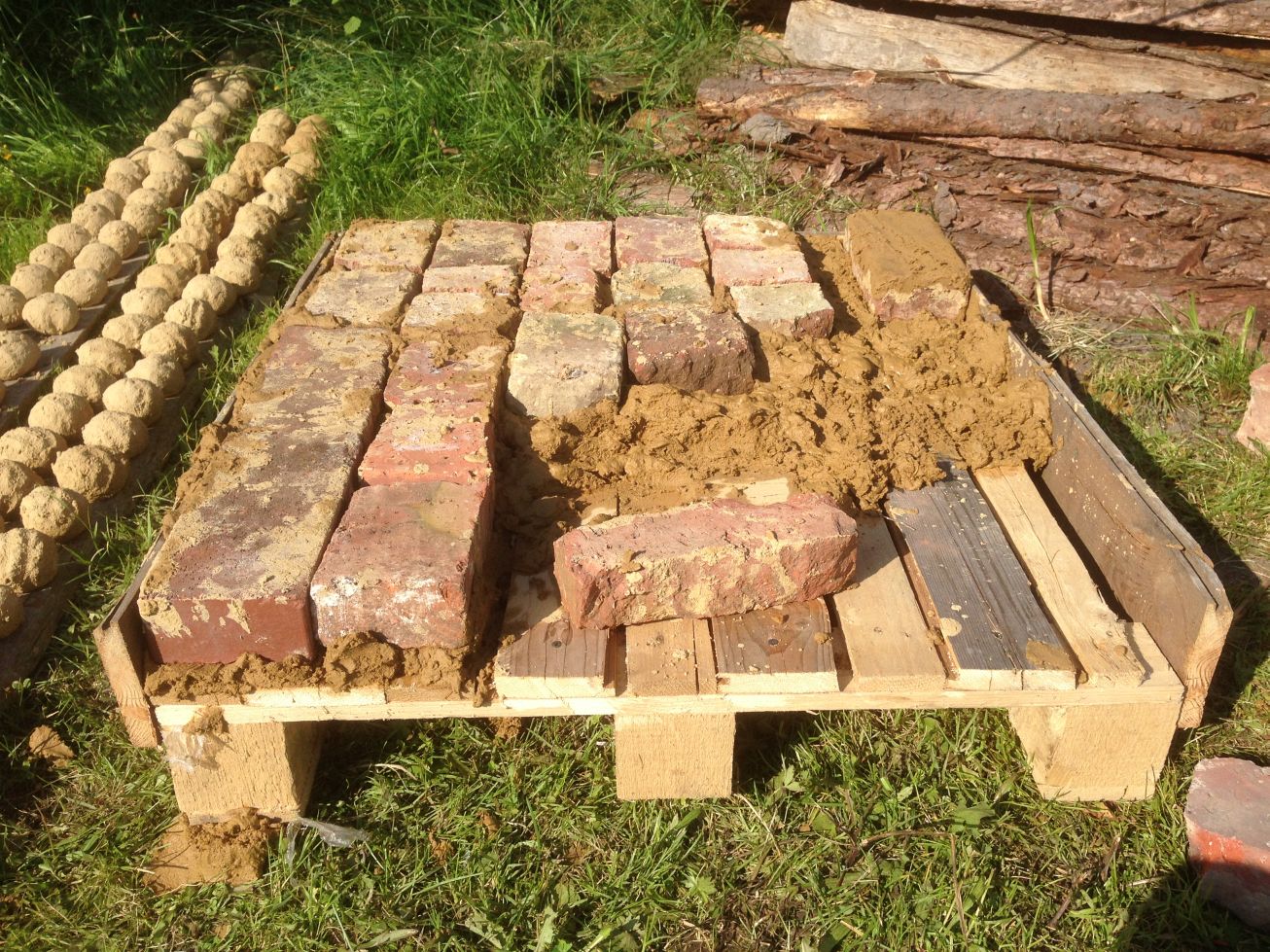 Ziel war es, an dem Wochenende den Ofen nur aus Lehm und Ziegelsteinen zu bauen. Ganz einfach, ohne Rauchabzugsrohr und Schnickschnack. Hauptsache, am Ende gibt es Pizza!