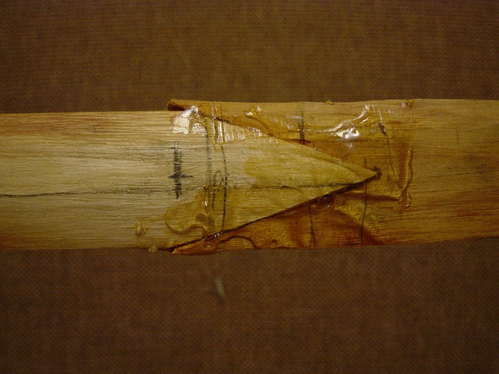 Sprich, ich habe mich dazu entschlossen, diesen "Stave" in etwa mittig durchzusägen, überflüssiges wegzuspalten