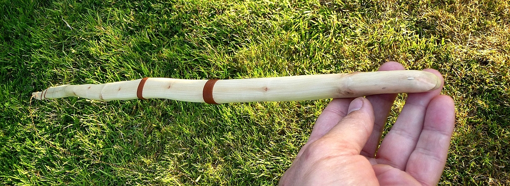 Schließlich habe ich noch ein Lederband um den Griff gewickelt, aber ich denke das kommt wieder runter.