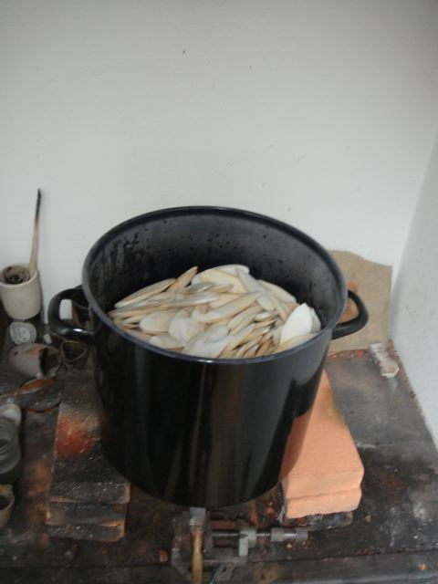 Was man in Blogs usw so ließt von wegen brennen der Schalen und mahlen im Mörser usw... ist in meiner Erfahrung absolut nicht nötig oder auch zweckmässig. Brennen erzeugt bestenfalls alkalische Aschen, Einstampfen im Mörser ist mühsam und liefert Pulver mit zu hohem Feinpartikelanteil...