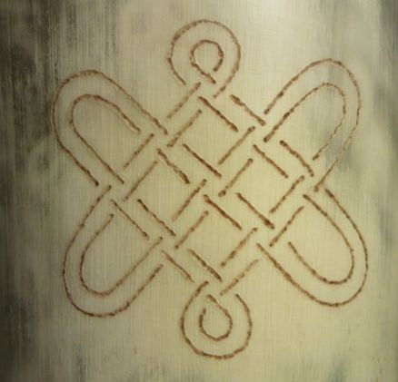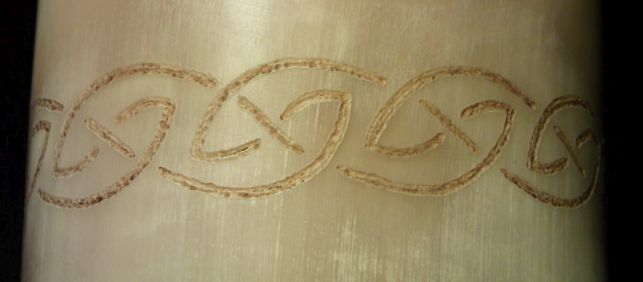 Nach einigen Probeläufen auf Holz, habe ich mit dieser Methode mein Trinkhorn verziert.