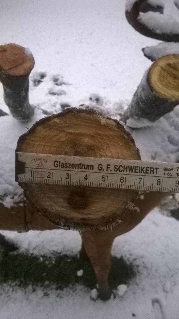 Hier erkennt man zumindest welche es werden soll: weg ist sie: Da ist das gute Stück, ich denke die Rinde kann man auch schön sehen: