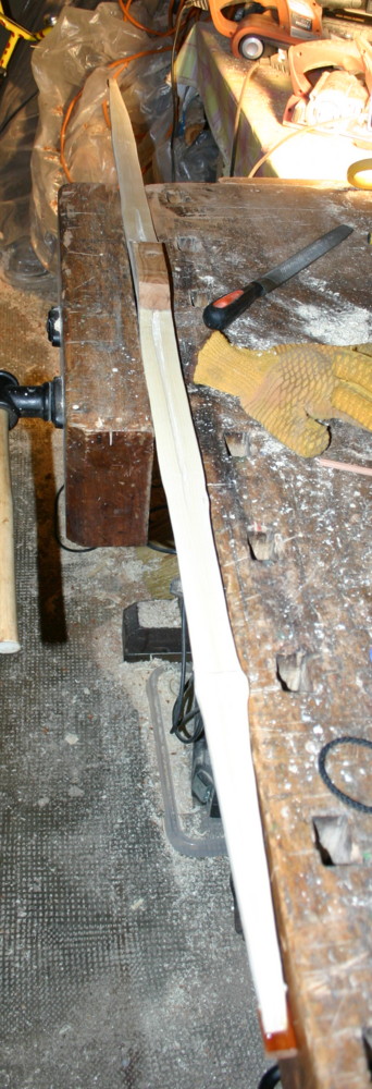 Er war im Griffbereich eingesägt und klaffte dort natürlich auseinander. Iregndwie hat mir das nicht gefallen und ich habe den Griff mit dem E-Hobel platt gemacht.