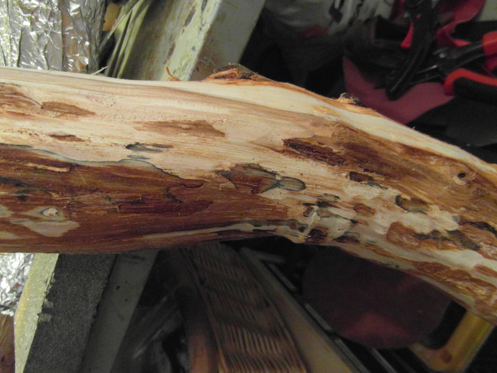 Bröslig!? Das ist fatal... Und die (im Bild) untere Hälfte? Wäre das genug zum spleissen? Oder geht die Fäule weiter als man auf Foto sehen kann?