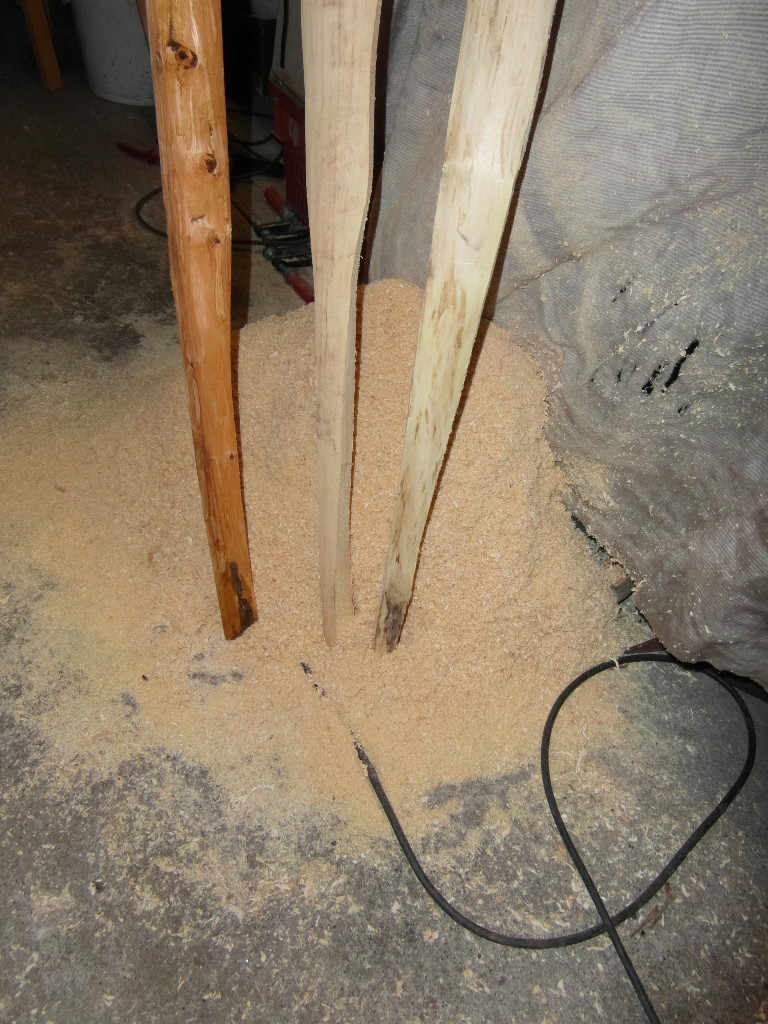Also auf zum Holler, den hatte ich ja gespalten und die Hälften in die Ecke gestellt ( mein Favo war ja die Hopfenbuche)