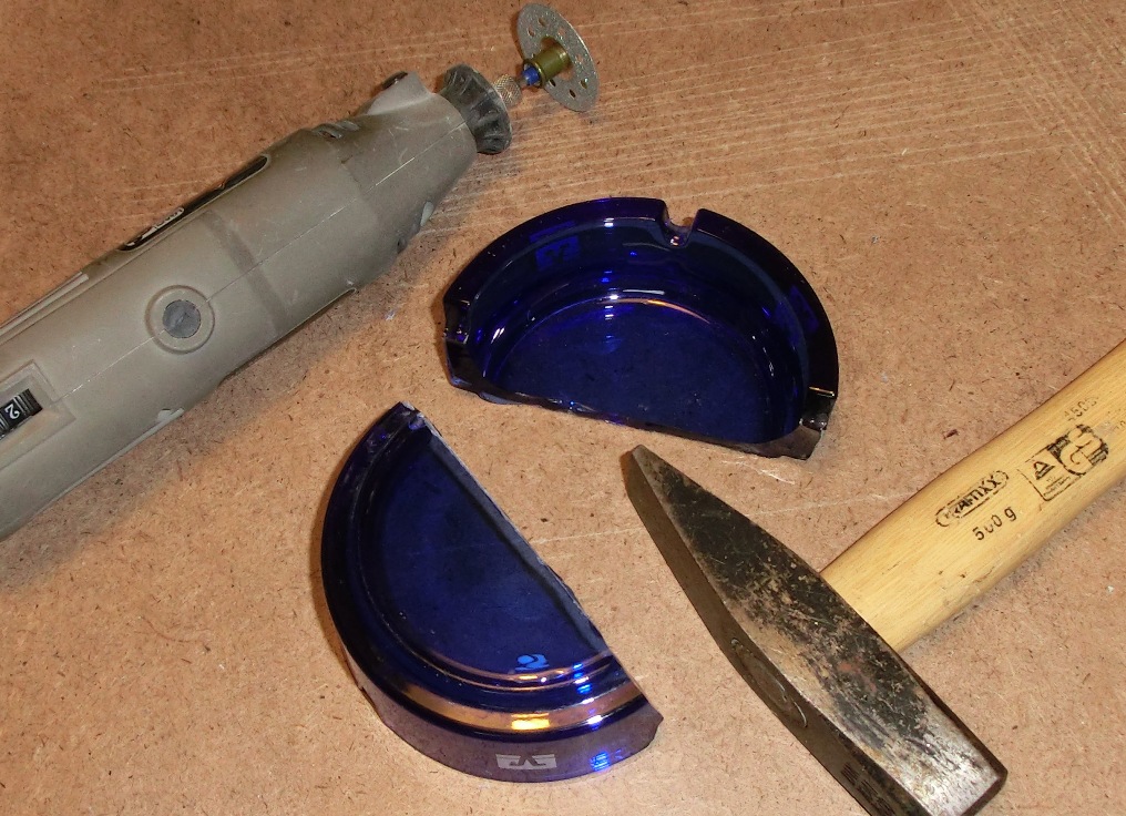 Ich schleife das Glas mit der Diamantscheibe genau so wie ich es mit einer Trennscheibe und Metall mache.