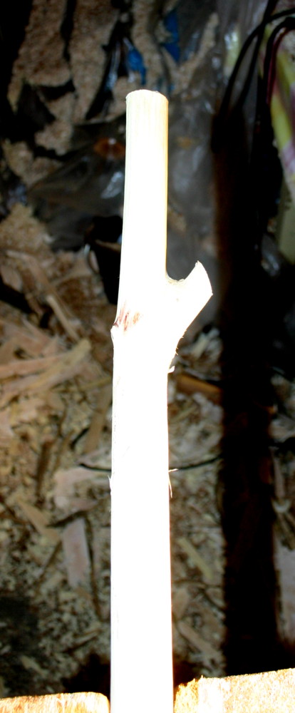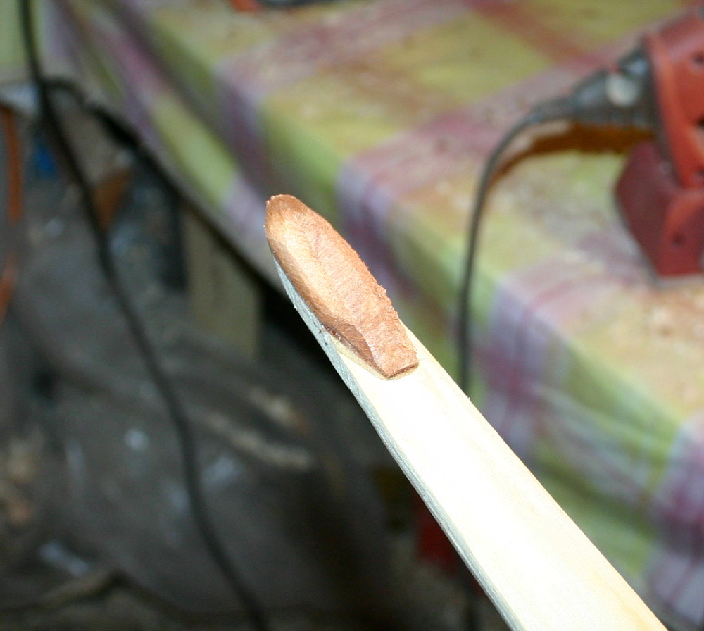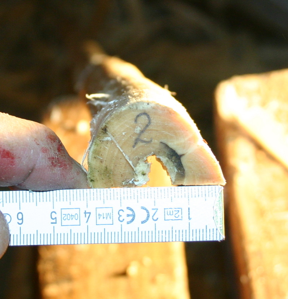 Ich hab mir schon gedacht, dass es so reibungslos nicht weitergehen kann. Der rechte Wurfarm hat in der Mitte einen starken Ast, der jedoch nicht so sehr nach aussen dringt. Ich hab den Wurfarm an dieser Stelle einfach nicht zum Biegen gebracht.