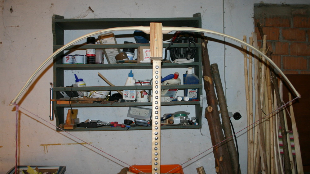 Nun ging´s an´s tillern. Der linke (obere) Wurfarm war etwas reflex und der rechte (untere) Wurfarm war etwas deflex.