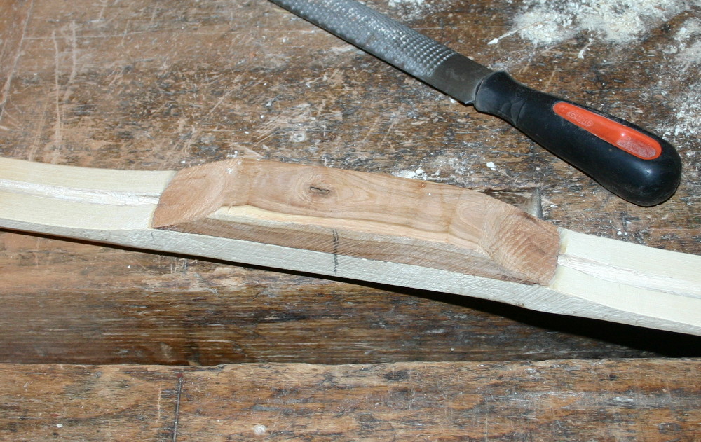 Anschließend kam der Bodentiller, der relativ schnell gepaßt hat. Nun kamen die Overlays dran, auch dafür war noch Apfel da. Nach dem Kleben habe ich sie mit der Raspel nur mal grob in Form gebracht.