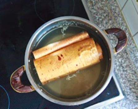 4. Die Birkenrinde von der weissen Aussenschicht befreien: