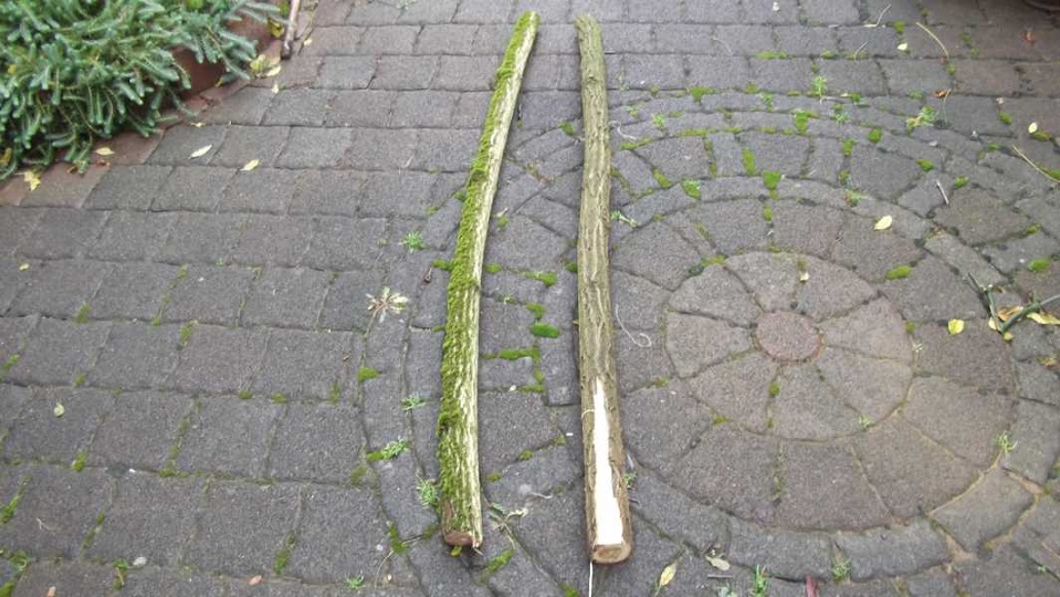 Die Rinde ist runter, lass die Stavs nun mal 2 Tage stehn, dann arbeite ich grob die Bogenform aus.