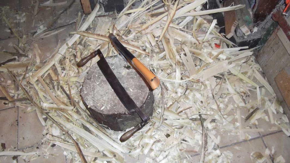Verwendetes Werkzeug bisher : Klappsäge, Beil , Ziehmesser