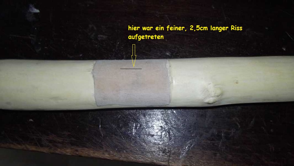 Allerdings hatte sich ein sehr feiner, 2,5 cm langer Riss eingestellt. Kann nicht mal sagen wann,