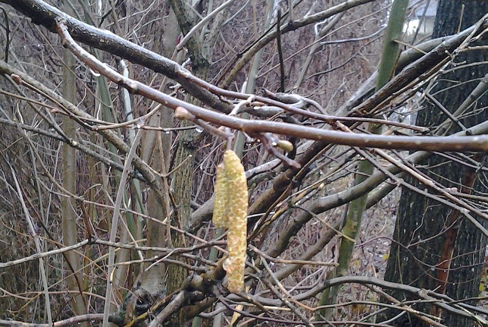 Ich hatte mich jetzt schon ein ganzes Jahr auf die Challenge gefreut, und dann kam mir wieder mal Terminstress dazwischen. Der Sonntag war auch so ein richtig mieser Tag hier, mit Schneeregen und Wind. Darum hab ich die erste Hasel genommen, die nicht weggelaufen ist, und von dem Strauch hatten alle Stämmchen Drehwuchs.