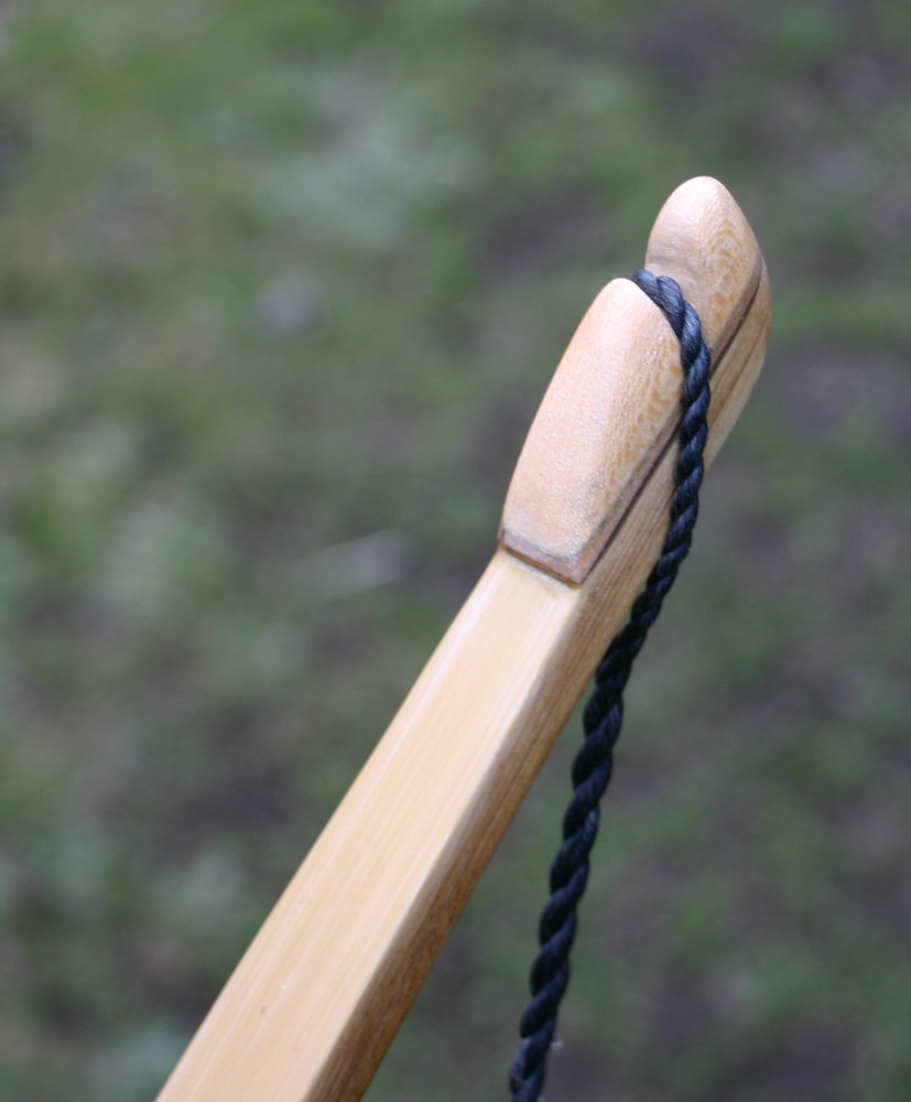 Gut, nun weiß ich ja, dass Holler ein drucktolerantes Holz ist. Nur hatte ich bis jetzt noch keine Erfahrungen mit einem Bambusbacking. Und so habe ich es einfach mal ausprobiert. Im Endeffekt ist es ein passender Bogen für meine fast 13-jährige Tochter geworden. Auf jeden Fall hat der Versuch gezeigt, dass Holler mit Bambus geht. Allerdings muss man beim Tillern höllisch aufpassen, da der Bambus keinen Fehler verzeiht und den Holler bei Schwachstellen gnadenlos platt macht (habs einmal gerade noch frühzeitig bemerkt). Die ersten 100 Pfeile hat der Bogen geworfen und der Holler erstrahlt unter dem Bambus immer noch in seiner vollen Schönheit