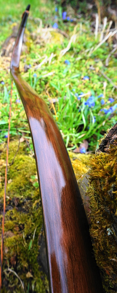 Danke euch dreien, ich muss sagen dass ich ganz zufrieden mit dem Ergebnis bin, zumal wenn ich ehrlich bin war das ganze ursprünglich ein Versuch was mit der Esche machbar ist. Ich habe nicht gedacht dass die Recurves (über 90°) zu Bigen sind und auch halten. Mit dem Horn scheint es aber zu funktionieren, trotz Einschiessen ist bis jetzt kein bisschen von der Biegung verloren gegangen. Ich habe die Biegung mit Dampf vor dem endgültigen Trocknen vorgenommen, ist sicher auch ein Faktor der zum Gelingen beigetragen hat. Was das Finish anbelangt, habe ich mich durch Dirk inspirieren lassen. Ich bin von Schellack begeistert, auch wenn ich die Verarbeitung noch nicht so ganz im Griff habe. Der Glanz ist sehr schön der dadurch zu erreichen ist, aber ich habe das Mischverhältnis und die Technik des Aufbringens noch nicht so gut im griff.