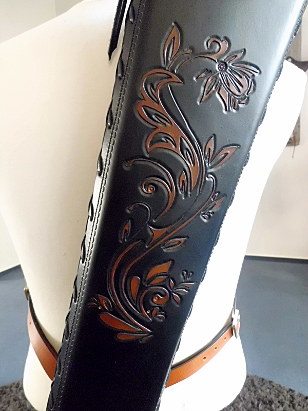 Rückenköcher Leder geflochten tasche punziert gefärbt schnürung leder veritas lederarbeiten 4 Fletcher.JPG