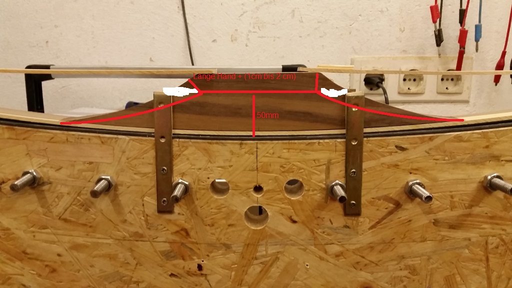 So, hier noch ein Bild, dass die Kontur des Mittelstücks in der Form zeigt. An beiden Seiten liegt (ohne Spannung) das Bambuslaminat auf. Vielleicht hilfts für die Einschätzung weiter.