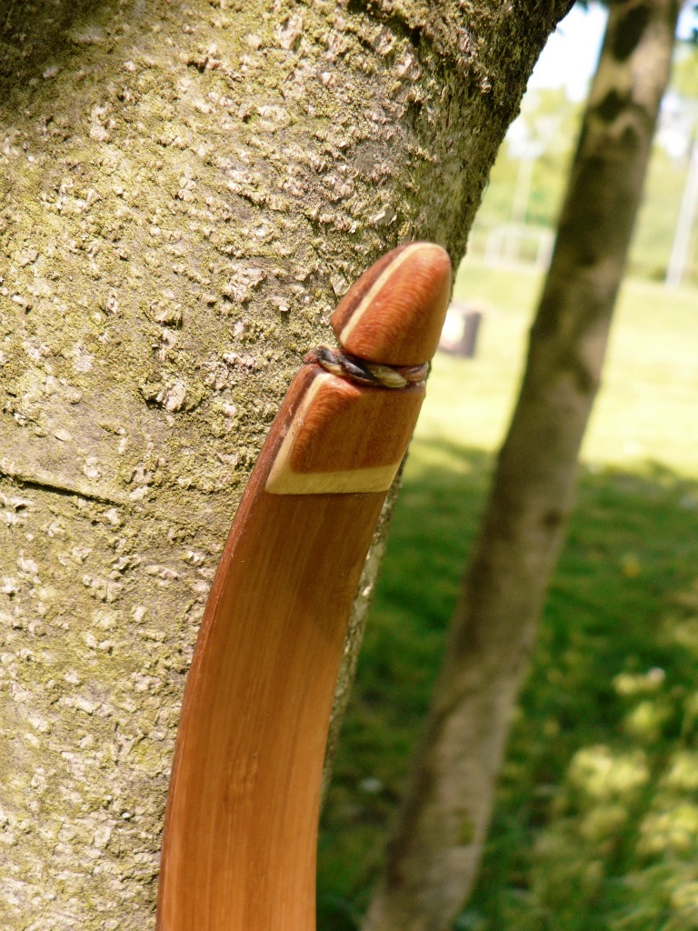 @Fichtenelch: Das Powerlam soll mir die Biegung weiter nach außen bringen (und tut es für meinen Geschmack genau richtig), ich habe es deshalb so lang gewählt, weil ich von der Ursprünglichen Swissbow-Form mit 20" Griffstücklänge eingekürzt habe auf nur 16", die Radien der Form habe ich aber fast komplett übernommen. Da ich den Wurfarm nicht einfach jeweils 2" länger machen wollte, hab ich das relativ lange Powerlam mit reingeleimt.