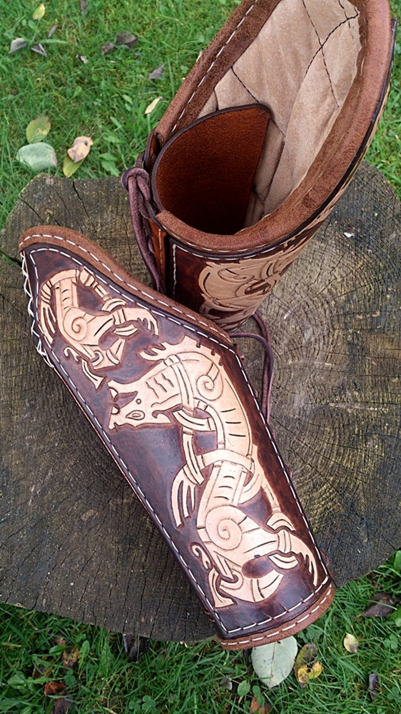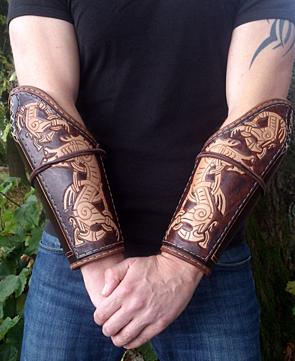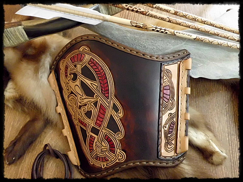 da ich zum endschleunigen nicht nur Bogenschießen betreibe sondern auch ein ganz klein wenig im Frühmittelalter als Rus Wikinger unterwegs bin habe ich mir zwischendurch auch mal was gegönnt und mir einen Armschutz, passend zu meiner schon bestehenden Ausrüstung gefertigt.